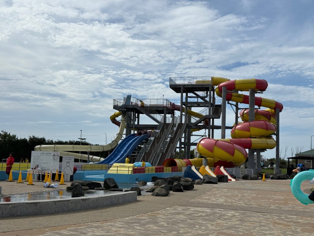 スライダーや波のプール、水が四方八方から噴き出す大型遊具などがあります!