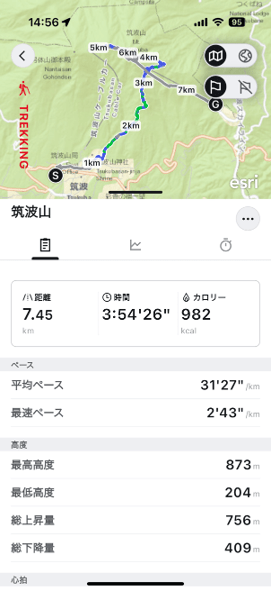 登山のログをG-SHOCKで取得し、専用アプリに取り込んだものです。